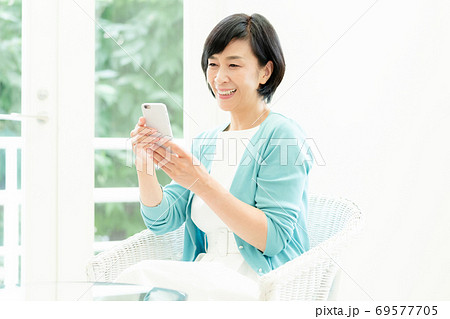 スマホを見るミドル女性