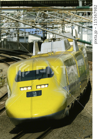 海の近くを走る幸せの黄色い新幹線ドクターイエロー