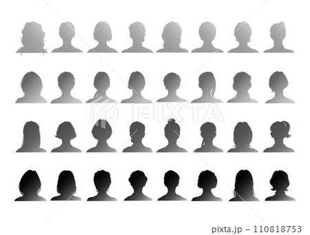ヘアスタイルの違う女性の証明写真シルエットのイラストセット
