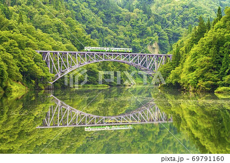 第一只見川橋梁を渡る只見線の列車 福島県三島町