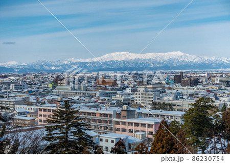 鶴ヶ城からの眺望 北西側 飯豊連峰 飯豊山 御西岳 大日岳