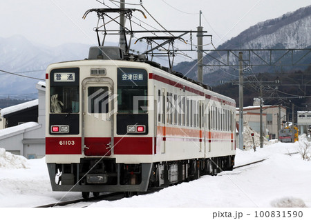 冬の会津鉄道会津線に乗り入れる東武6050系電車