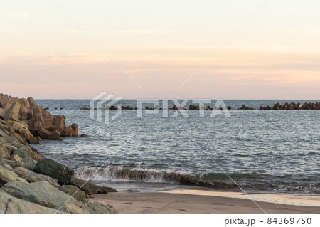 茨城県日立市 会瀬港近くの海岸の波打ち際