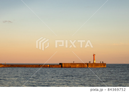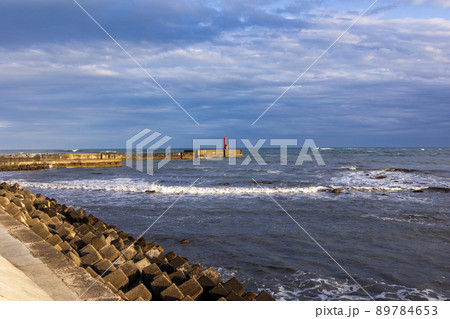 茨城県日立市 会瀬港 灯台と波けしブロック