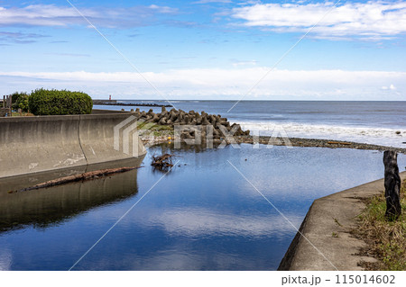 茨城県日立市 会瀬港近くの海岸の波打ち際