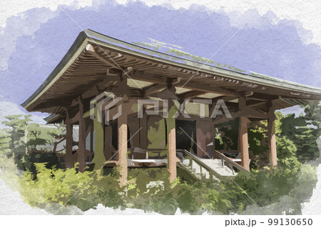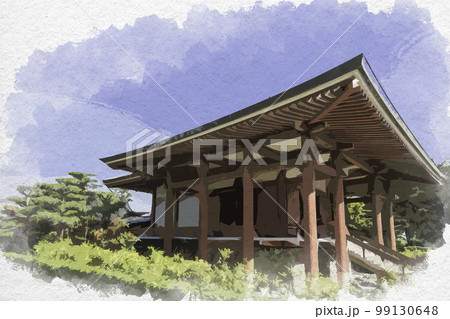 水彩画風 中宮寺 表御殿 奈良県生駒郡斑鳩町
