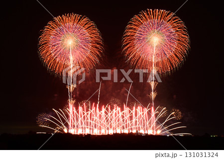 夜空に咲く花火 高く輝く花火大会 花火 夜空 花火イメージ 花火大会