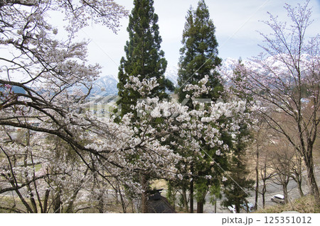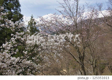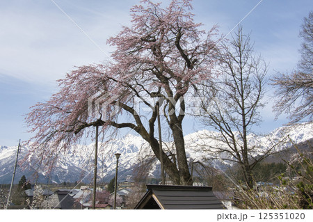伝行山徹然桜と残雪の白馬連峰 長野県白馬村