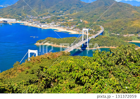 能島城跡から眺める伯方島と大島間の伯方・大島大橋(しまなみ海道)