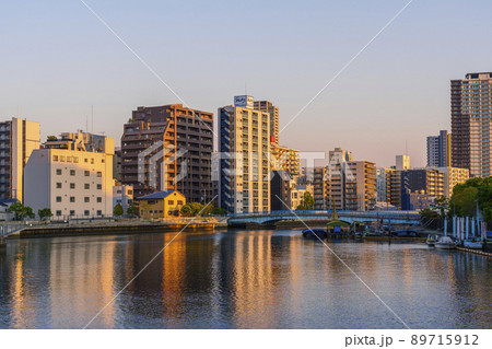 大渉橋から伯楽橋方面の都市風景 夕景(大阪市西区)