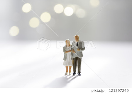 光の中で寄り添う老夫婦 シニアカップル 高齢者カップル