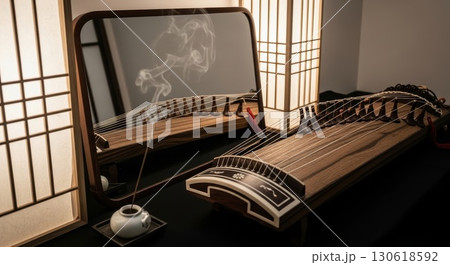Traditional Korean Gayageum Instrument in Zen Studio with Incense Smoke