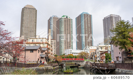 東京都中央区佃 佃小橋と超高層マンション