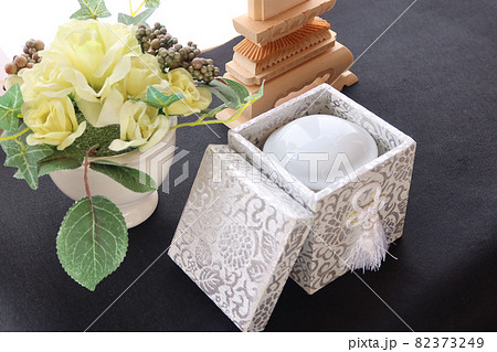遺影の前におかれた骨壷とお位牌2 終活のイメージ