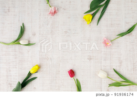 花 : 黄色のチューリップと卒業証書 筒のフラットイメージ