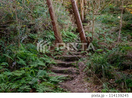 登山道、森林、雑木林、山の中、トレイル