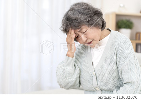 頭痛が辛いシニア女性