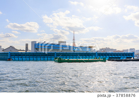 街景 那珂川遊歩道から見るボートレース福岡と電波塔 福岡市博多区