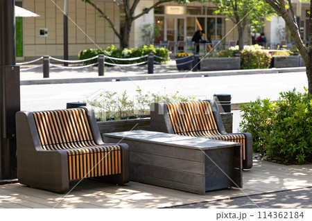 ベンチ<柏の葉キャンパス駅前の歩道/20024年5月>