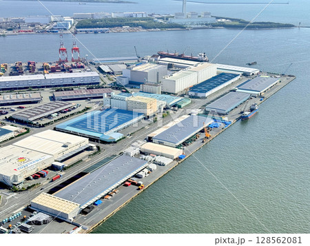 大阪・南港のコンテナターミナル(写真中央。大阪市住之江区)