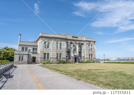 みなとぴあに復元された旧第四銀行住吉支店の建造物 イオニア式列柱