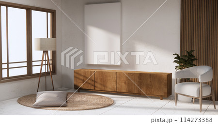 scene empty modern japanese Empty, room white wall on wooden floor interior design.