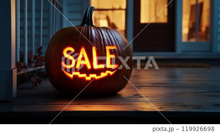Enchanting Autumn Evening with Pumpkin Decor and Cozy Lighting in Rustic Setting Generative AI