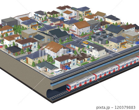 家 住宅 街 CG ジオラマ 地下鉄 BG 街並み 斜め 背景