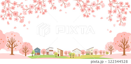桜の季節の街の風景のイラスト 背景素材 バナー