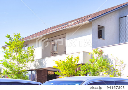 モダンな新築の戸建て住宅モデルハウスのある風景