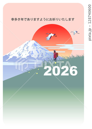 年賀状テンプレート,登山で富士山と初日の出を見る