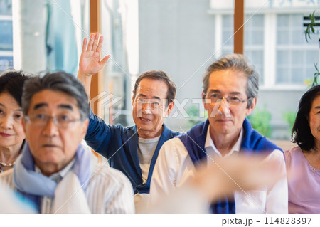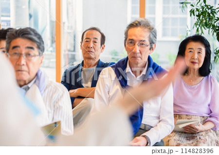 説明会に参加するシニア