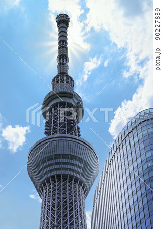 [東京・押上] 東京スカイツリータワーの天辺に位置する展望台のクローズアップ撮影。