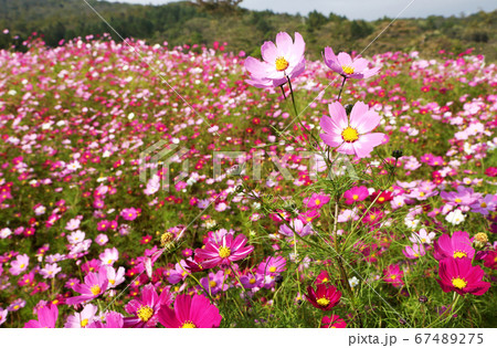 秋のコスモス街道を彩るピンクと赤のコスモス(4)
