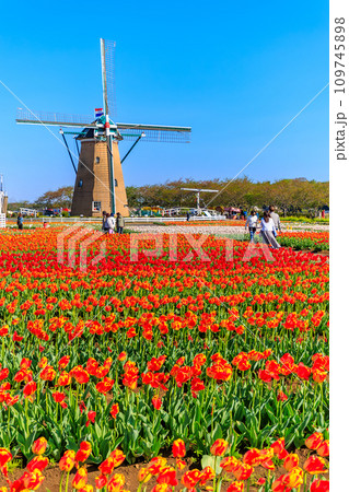 佐倉ふるさと広場の風車とチューリップ 千葉県