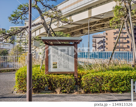 旧中川にある「逆井の渡し跡」の解説板(江戸川区側)