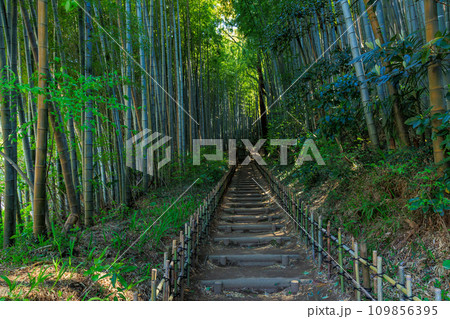 夏の木漏れ日差し込む千葉県佐倉市ひよどり坂の竹林風景 Ver1