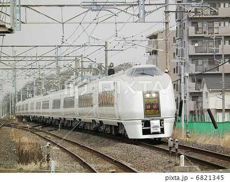 スマートな白い特急、E657系の走行風景