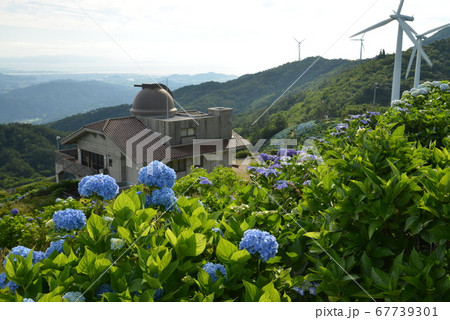徳島県佐那河内村 大川原高原の風車とアジサイ