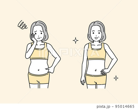 中年女性のウエストの変化 ミドル お腹 贅肉 中年太り ダイエット イラスト