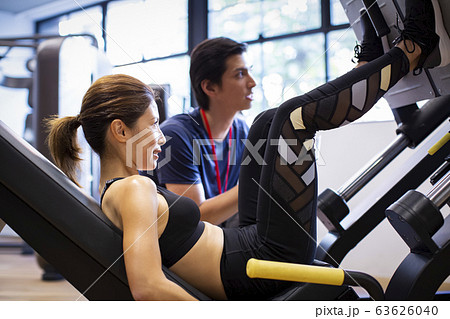 フィットネスをする男女(スポーツ、マラソン、ジョギング、運動、ダイエット、夏、体操、ジム)