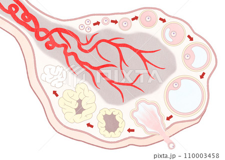 卵巣と卵胞の発育過程の図解イラスト わかりやすい人体解剖図