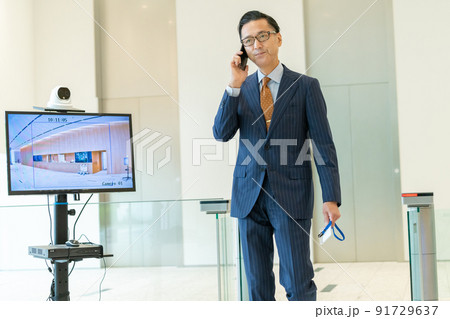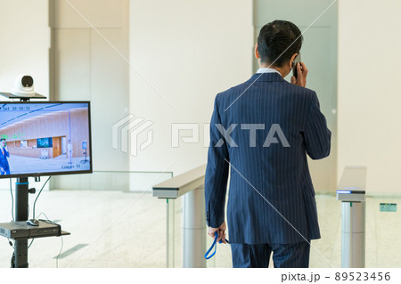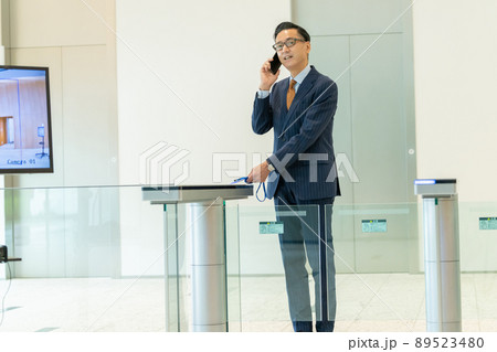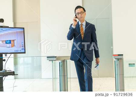 ビジネスマン スマホ セキュリティーゲート 撮影協力「LINK FOREST」