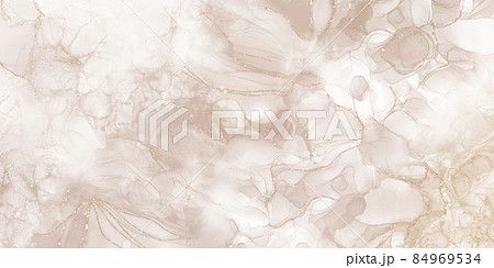 大理石風背景イラストバナー)ベージュに金色 アルコールインクアート 春 ナチュラル ニュートラル