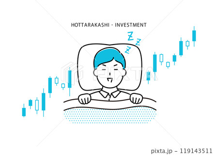 眠っている男性と株価のチャート―ほったらかし投資イメージ