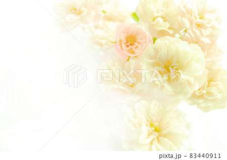 淡い薄ピンクのバラの花束背景 白 おしゃれ コピースペース有