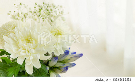 白菊花束の仏花背景画像【白菊・リンドウス・ピンポンマム・かすみ草】