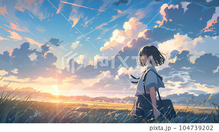 秋空にうろこ雲 コピースペース た 縦 コピースペース 背景 素材