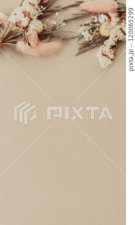 ベージュの背景にドライフラワー くすみカラーの花背景素材