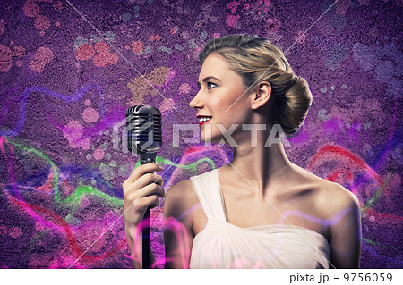 attractive female singer with microphone
